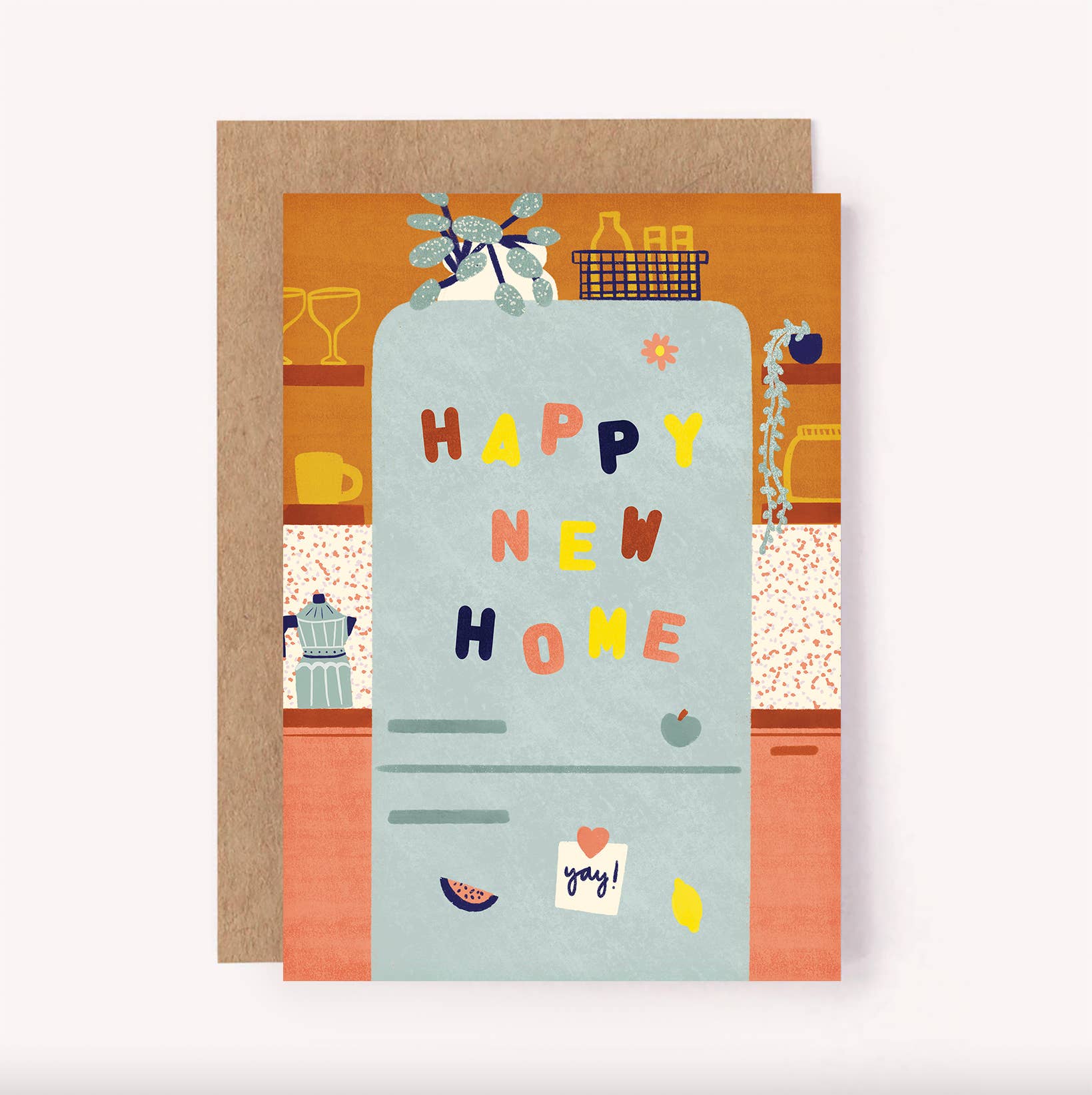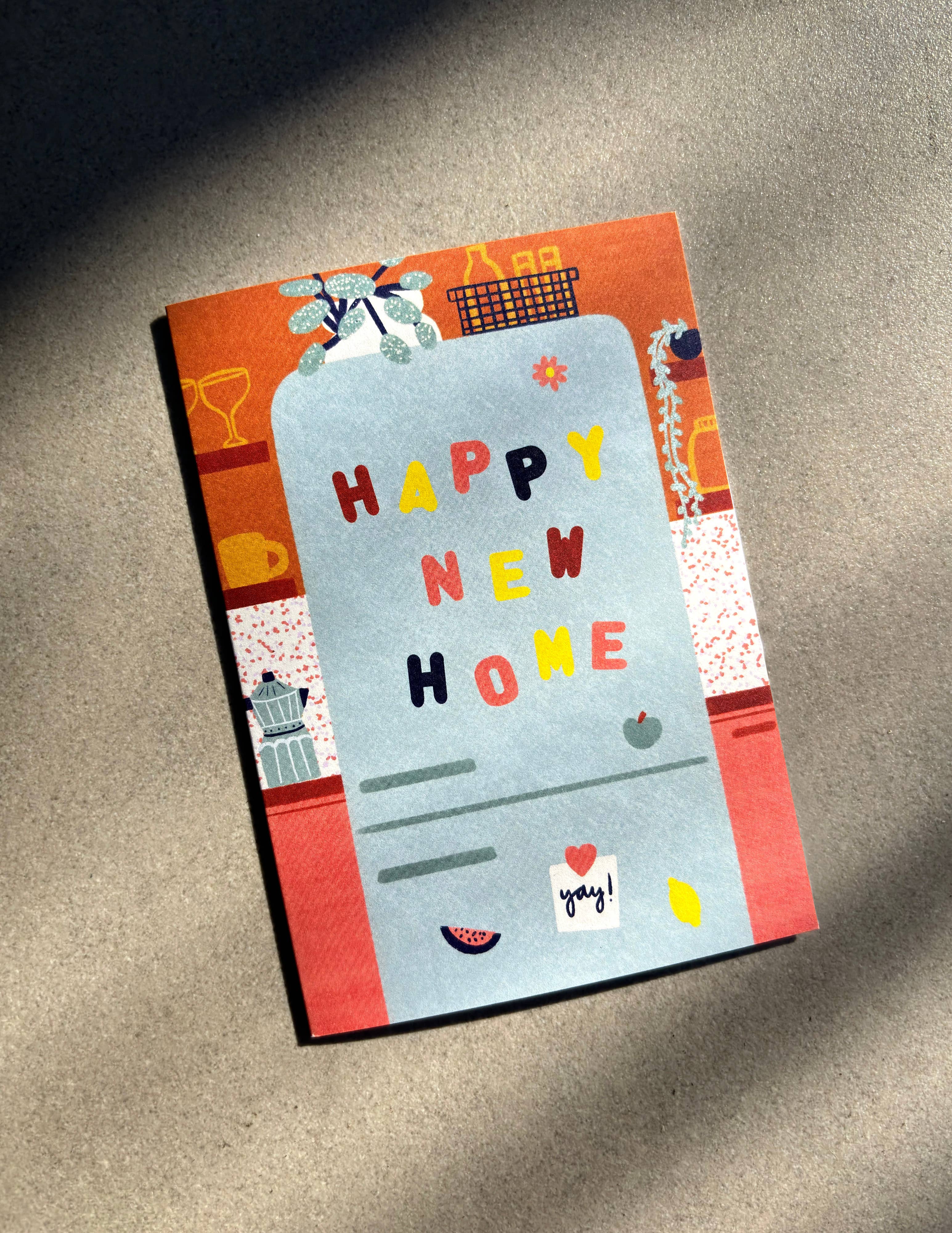 Celebrate a friend or loved one’s next chapter with this cheerful, illustrated new home greeting card. Featuring a cosy kitchen scene with a retro fridge adorned with letter magnets spelling “Happy New Home”, it’s a joyful way to mark fresh starts and new beginnings.