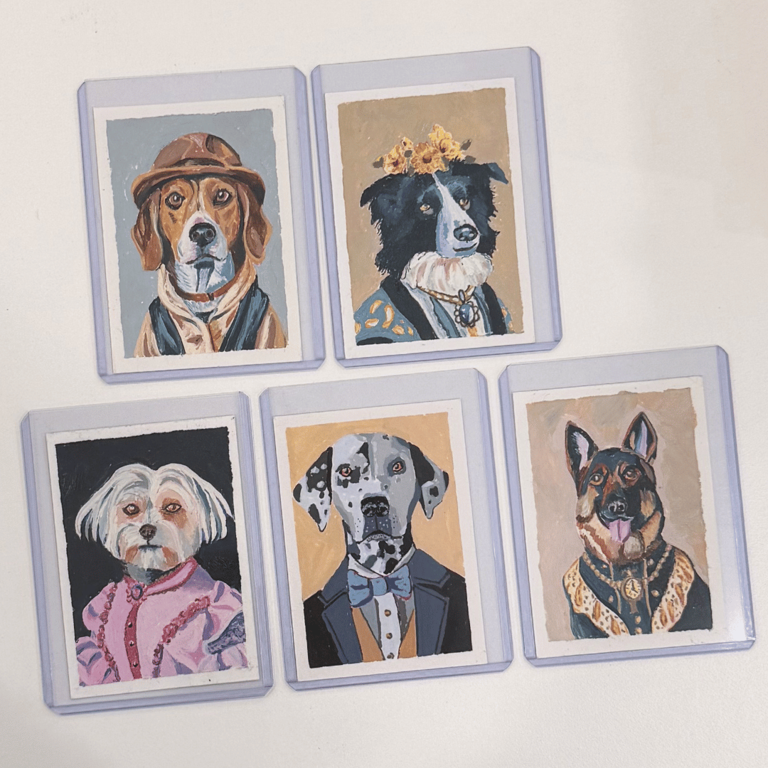ACEO stands for Art Cards, Editions and Originals - miniature artworks traditionally sized at approximately 2.5" x 3.5" (the same size as a standard trading card).