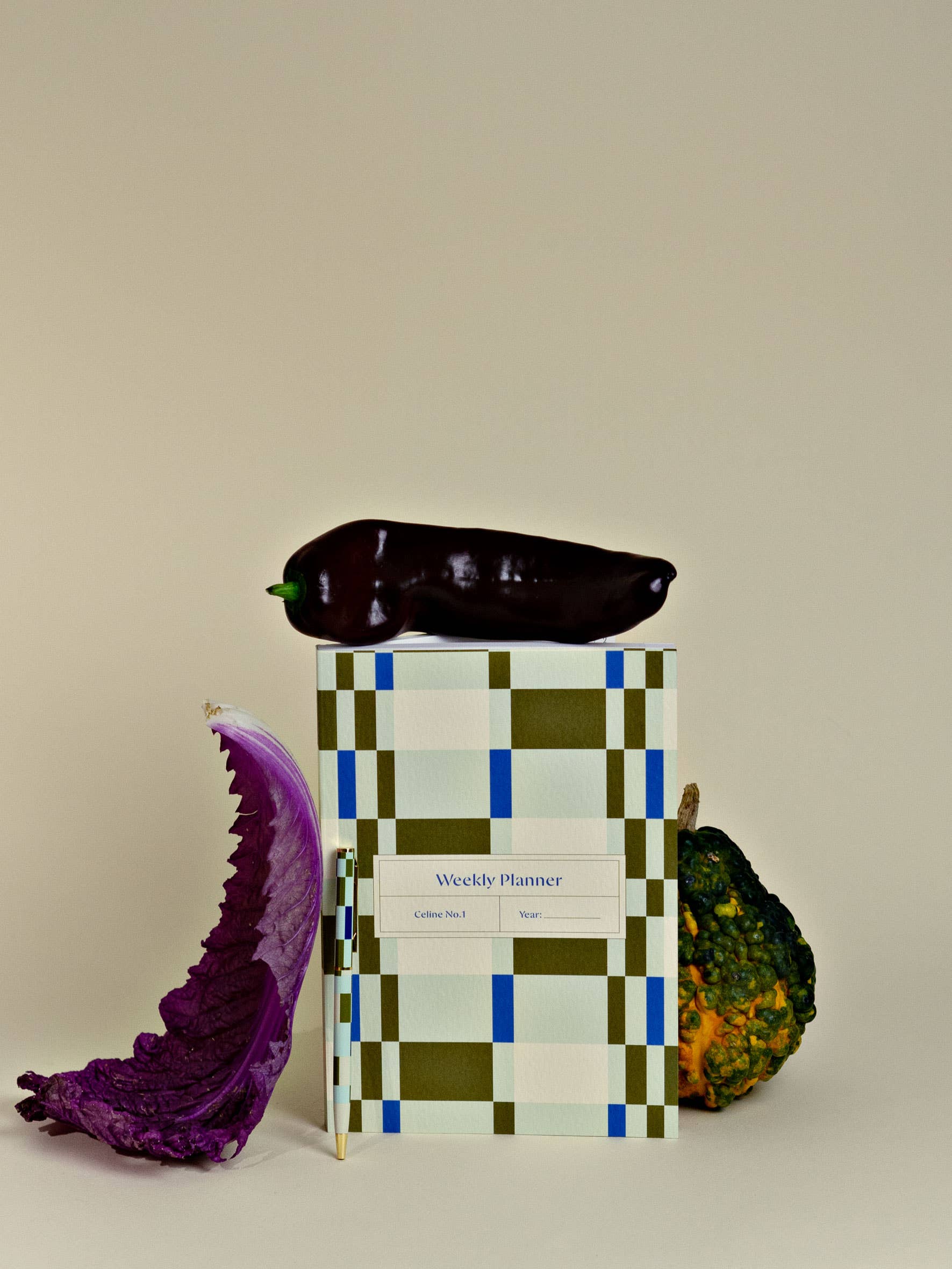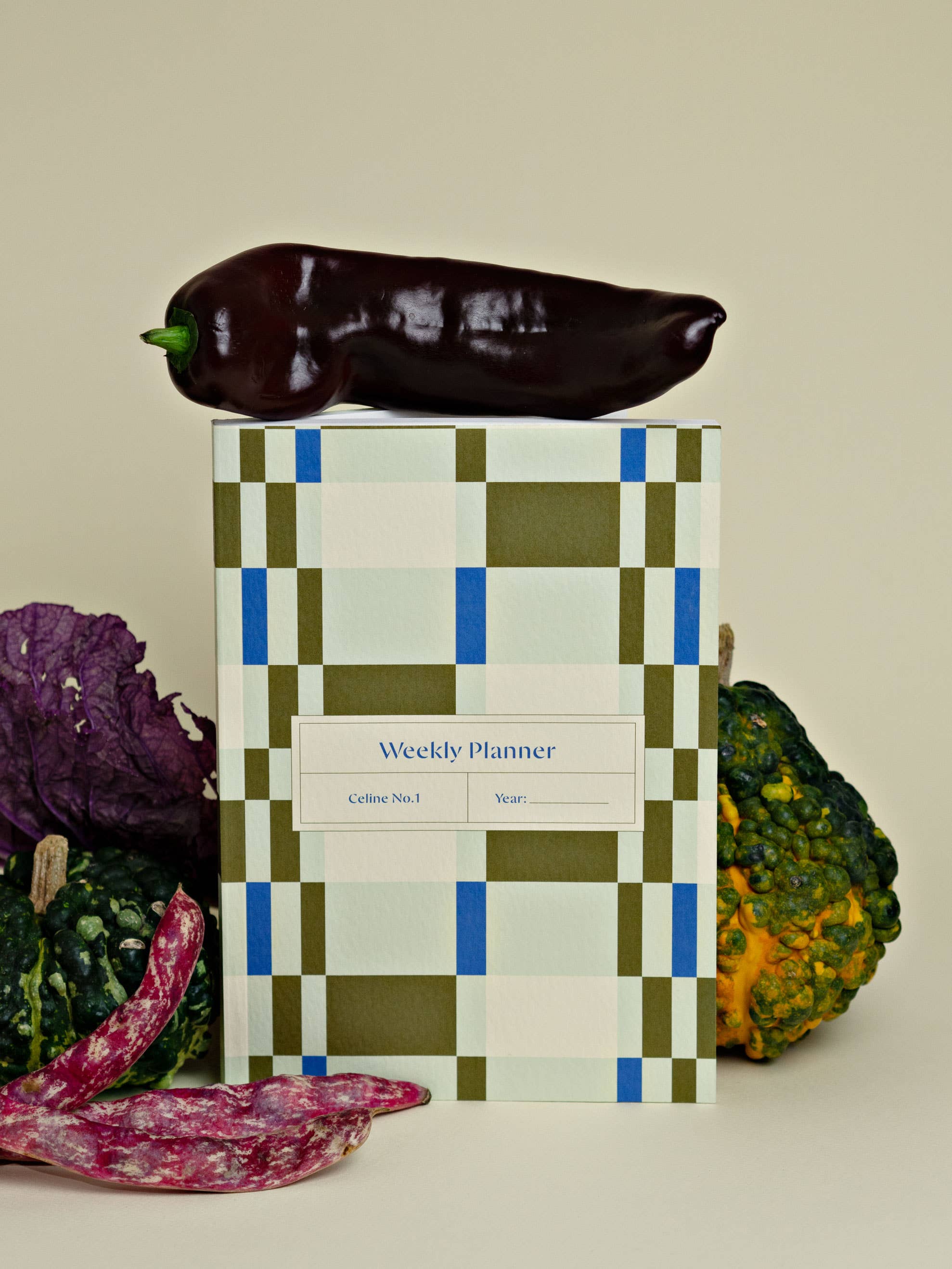 Clean, calm, and quietly confident, the Celine Weekly Planner features a soft check print in pale green and khaki tones — an easy, timeless addition to any stationery lineup.